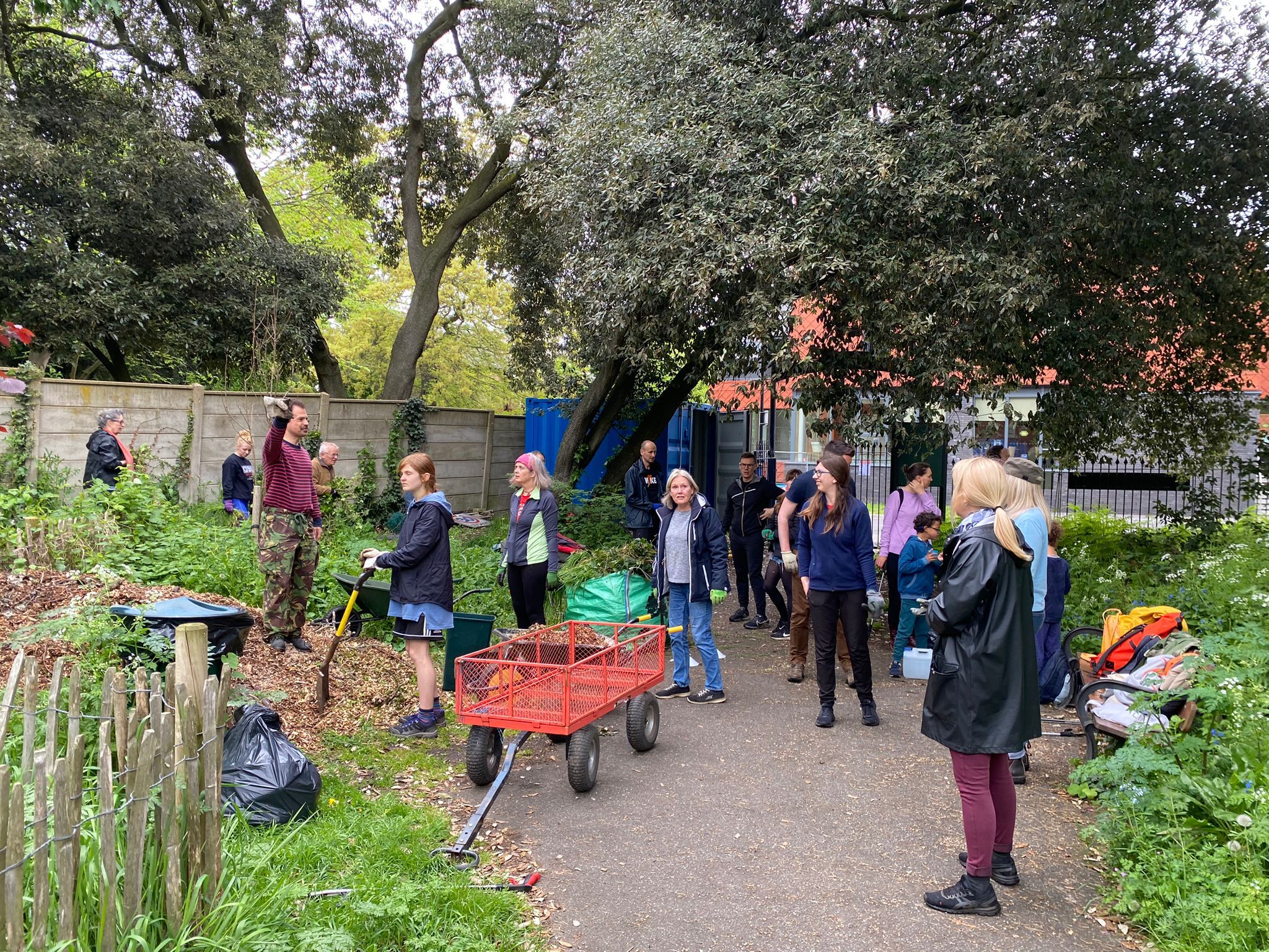 Tom, Robbie, Indy along with Chief Refreshments Officer Evan Lerwill met in the Hillside Gardens yard to collect wheel barrows and shovels.