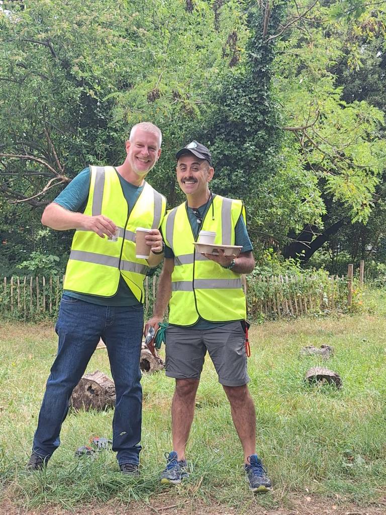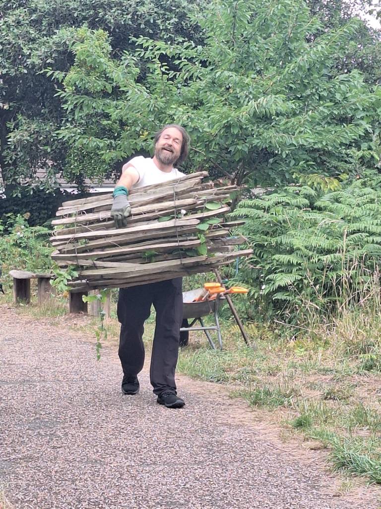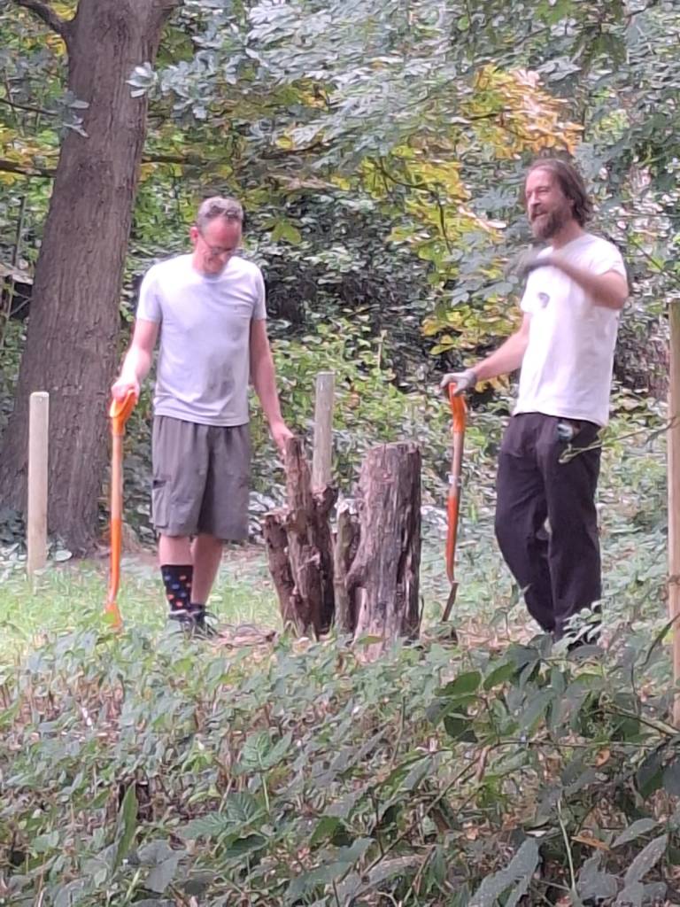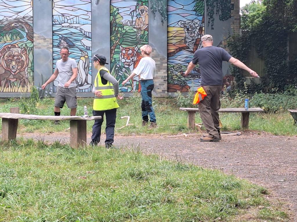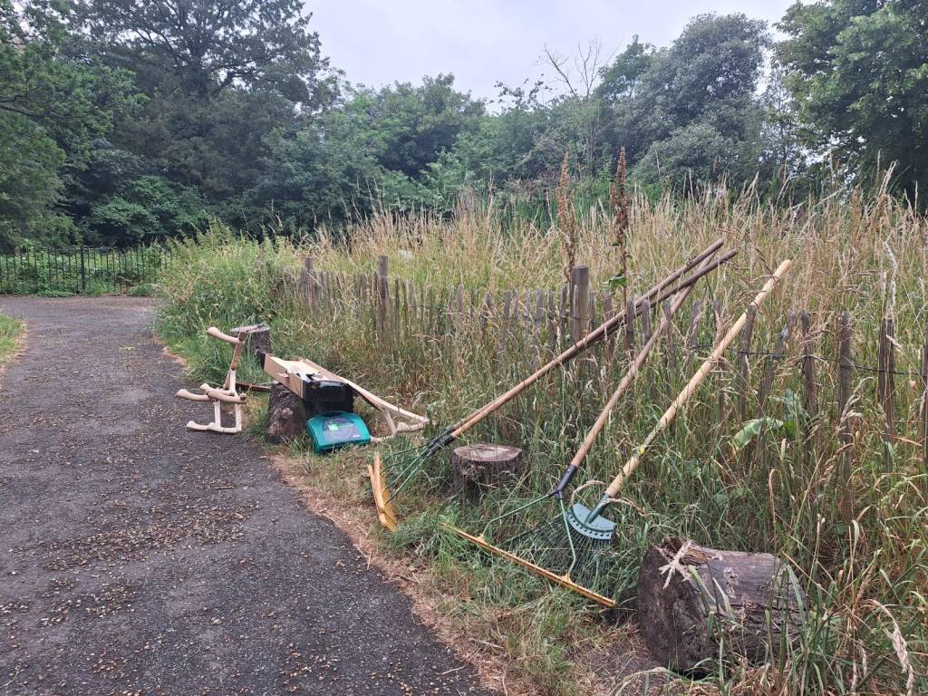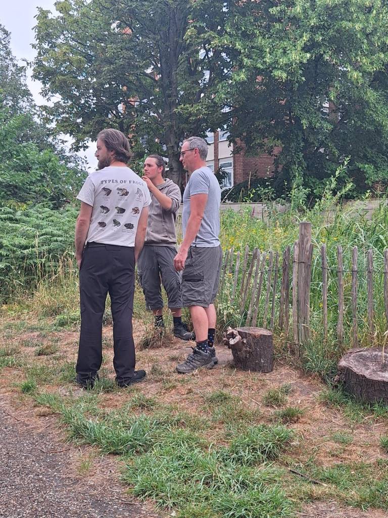 From June 24, 2025, the Friends of Hillside Gardens and Palace Road Nature Garden are working to replace the old pond and dipping platform in the Nature Garden. The project is led by Nick Peacock. The key problem is that the old liner of the pain failed. The new ponds will have waterproof liners to retain rainwater and, as there will be several smaller ponds, if one becomes damaged or otherwise fails, it will be easier to repair, and the other ponds will allow the wildlife refuge.
